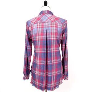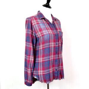 Anthropologie Size S Classic Button Up Shirt Flannel Plaid Red Blue