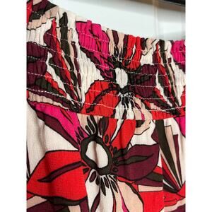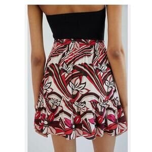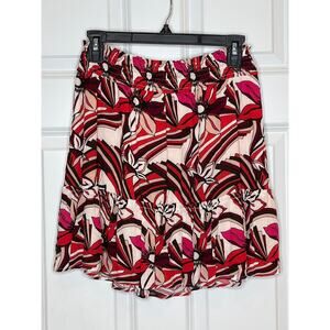 Anthropologie Size XS Orange Pink Black Floral Print Mini Skirt Pull On Elastic