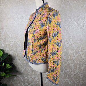Anthropologie Size XS Quilted Floral Jacket Embroidery Detail Contrast Trim