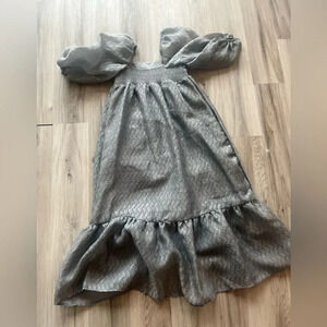 Anthropologie Size XS Silver Textured Puff Sleeve Ribbed Maxi Dress