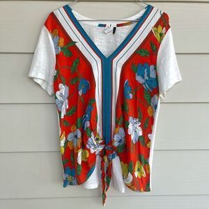 Anthropologie Size Small Ademi + Kin Sherburne Printed Boho Coloful Tee Tie Knot