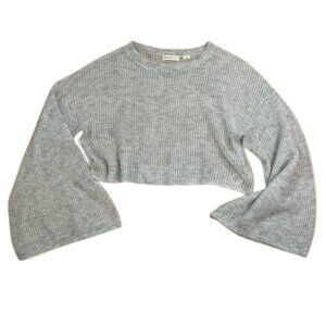 Anthropologie Sleeping On Snow Alpaca Wool Blend Cropped Bell Sleeve Sweater XL Gray Cozy Boho Cottagecore