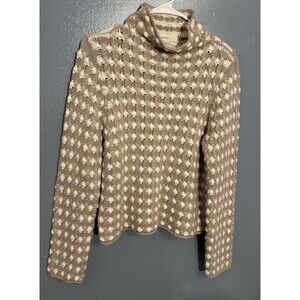 Anthropologie Sleeping On Snow Crochet Popcorn Sweater Mock Neck Tan Cream Med