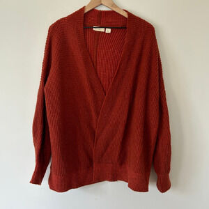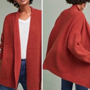 Anthropologie Sleeping On Snow Julienne Alpaca Wool Cardigan Rust Waffle-Knit