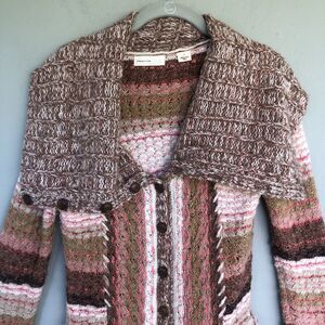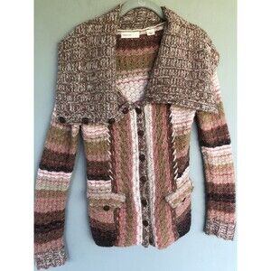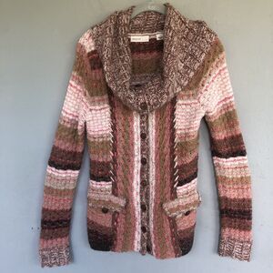 Anthropologie Sleeping On Snow Ouray Cardigan L Striped Wool Blend CowlNeck Cozy