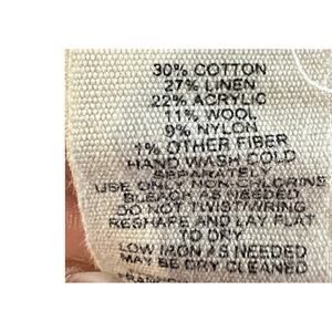 Details: Tunic length, turtleneck, extra long sleeves, pointelle details, open knit, linen/wool/cotton/acrylic/nylon blend