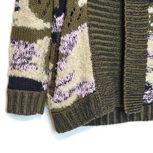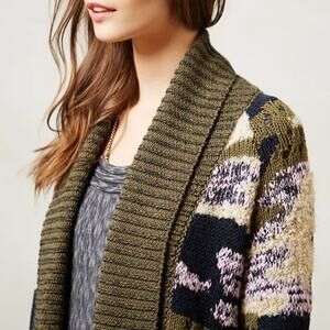 Anthropologie Sleeping on Snow Camo Print Open Cardigan Sweater Soft Cozy Green and Cream Color XS
