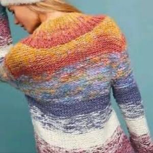 Anthropologie Sleeping on Snow Rainbow Chunky Knit Pullover Shawl Collar Sweater