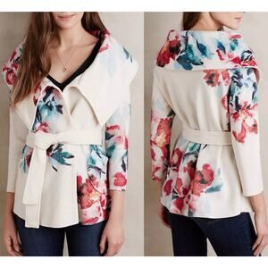 Anthropologie Sleeping on Snow Winter Blossom Boiled Wool Floral Jacket XS Cozy
