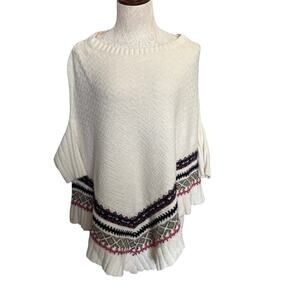 Anthropologie Sleeping on Snow knit poncho in ivory with Fair Isle trim detail.