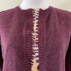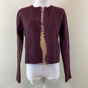 Anthropologie Sleeping on snow 100% wool cropped open maroon cardigan small