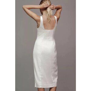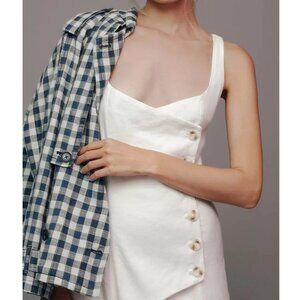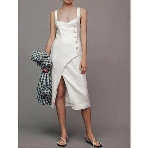 Anthropologie Sleeveless Linen Button Wrap Midi Dress White Large