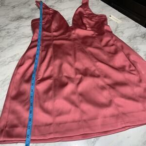 Anthropologie Sleeveless Plunge Satin Mini Dress Womens US Size 12 Pockets Pink