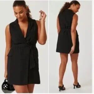 Effortlessly chic and brand new with tags 🖤 This black wrap-style mini dress features a sleek sleeveless cut and flattering silhouette — perfect for layering or wearing solo from day to night.