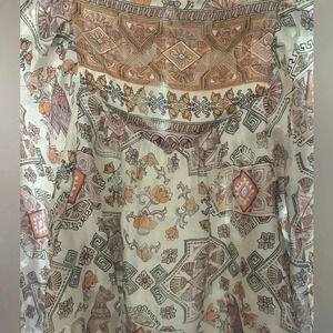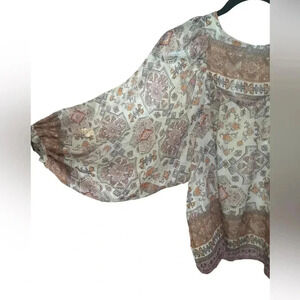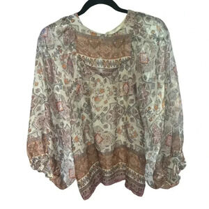 Anthropologie Small 100% Indian Silk Floral Top Peasant Boho long sleeve Blouse with bishop sleeves