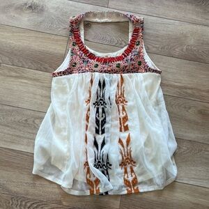 Anthropologie Small Akemi + Kin Siargao Boho Embroidered Beaded Flowy Tank