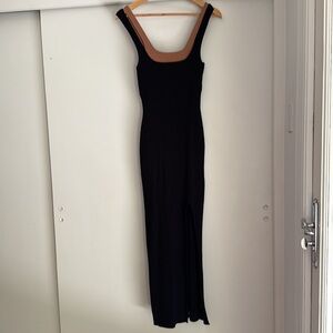Anthropologie Small Black Knit Ribbed Sleeveless Side-Slit Sweater Midi Dress