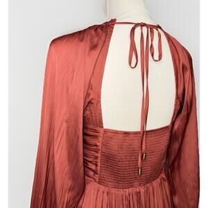 Anthropologie Small Brown Babydoll Mini Dress Blouson Silky Peasant Puff Sleeve