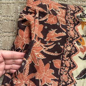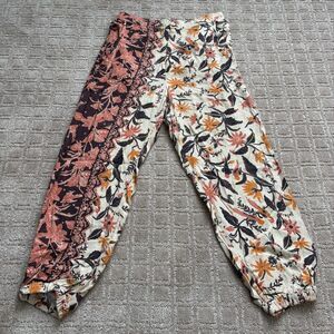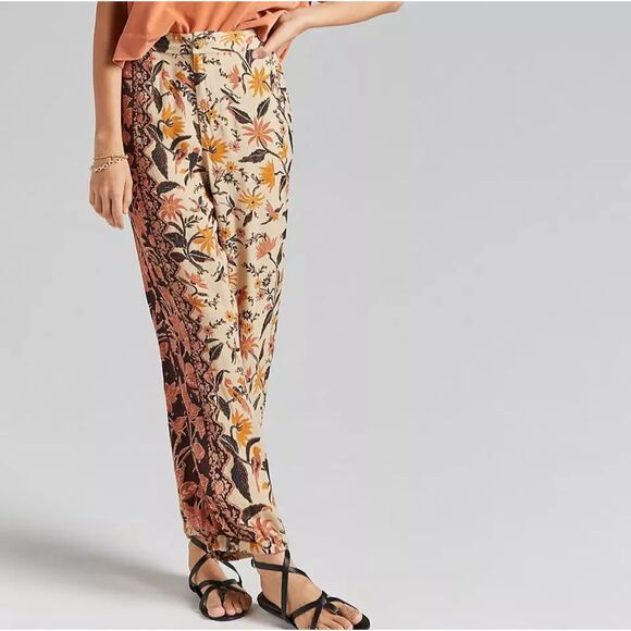 Anthropologie Smocked Balloon-Leg Pants Women's 4 Tan Floral Boho Jogger Harem