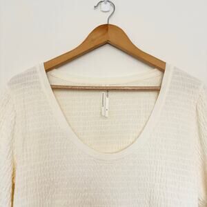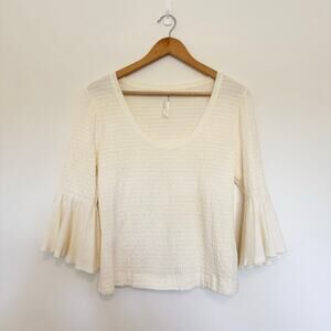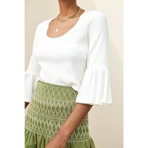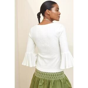 Anthropologie Smocked Bell Sleeve Top in White