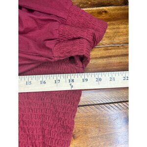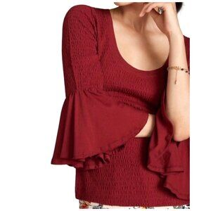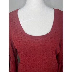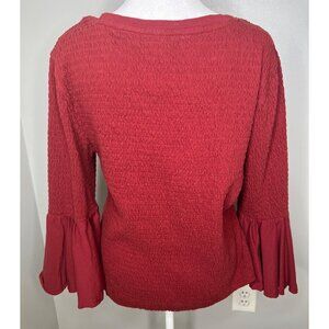 Anthropologie Smocked Red Textured Bell Sleeve Scoop Neck Top Women's XL