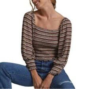 Anthropologie Smocked Striped Top With Puff Sleeves Striped Top SIZE XS