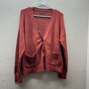 Anthropologie Soft Grandma Cardigan Sweater Sz Medium Burnt Orange Button Boho