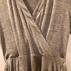 Super soft material on the Anthropologie dress! Love the asymmetric style on the bottom! Flattering fit!