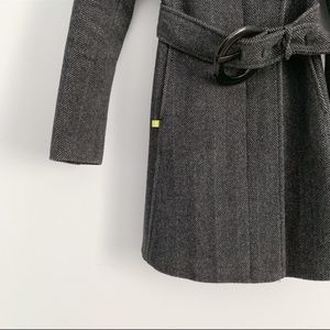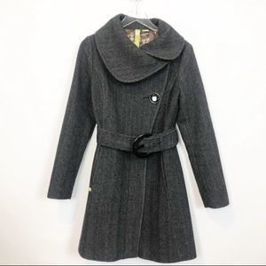 Anthropologie Soia & Kyo Grey Herringbone Wool Blend Belted Lined Coat Sz XL