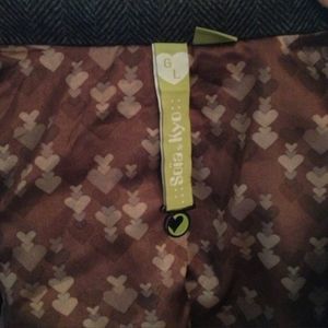 By Anthropologie’s Soia & Kyo. Gorgeous wool blend herringbone coat with an oversized collar and buttons, hidden buttons on bottom, double breasted, asymmetrical closure, cowl neck. Beautiful silky heart pattern lining throughout. 2 front pockets. Size x-large. Size label has been cut out, but it was mine, so I know what I bought. It fits more like a large, in my opinion, please see measurements. Excellent condition. Approximate measurements: armpit to armpit 21”, length 37”, sleeve 25.5”, 17.5” across shoulders. Retail $595.
