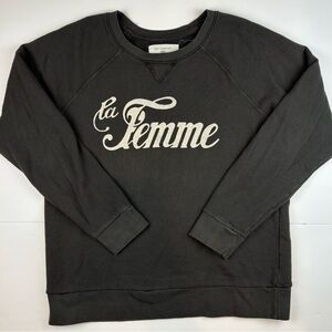 Anthropologie Sol Angeles La Femme Sweatshirt Black Crewneck Size Medium