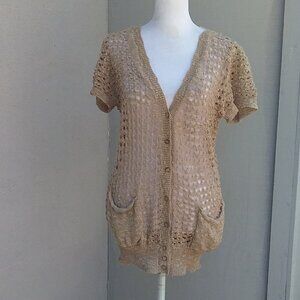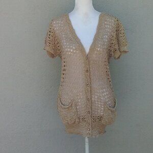 Anthropologie Solitaire Women's Preppy Bohemian Open Weave Cardigan Tan Size Small-Med