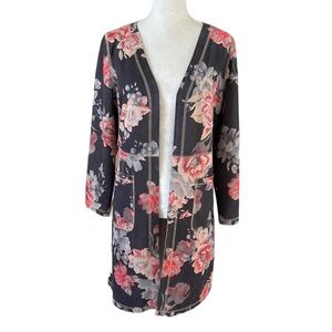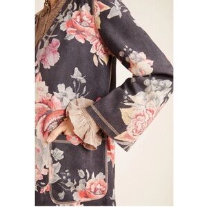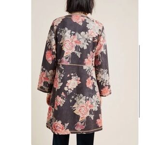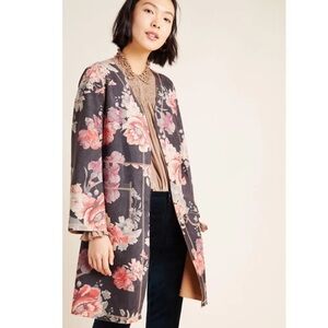 Anthropologie's Solitaire long open jacket in brushed floral print