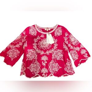 Anthropologie Solitare pink bohemian embroidered blouse top Sz S