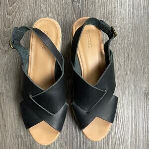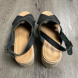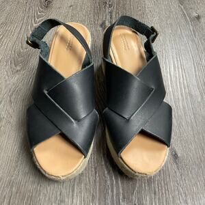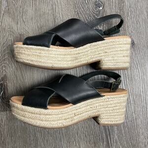 Anthropologie Soludos Amalfi Platform Espadrille Leather Sandal Heels Black 8.5