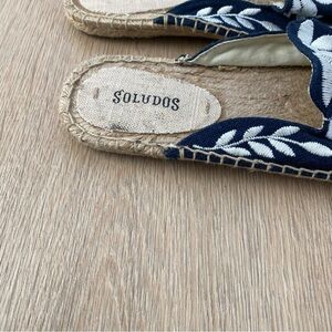 Anthropologie Soludos Blue Canvas Embroidered Mules
