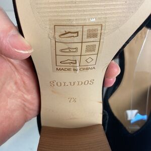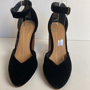 Anthropologie Soludos Collette Heels Black Genuine Leather Plush Velvet Size 7.5