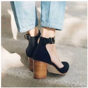 “With a plush velvet upper and a stacked leather heel, this stylish pair suits both winter-ready ensembles and your warm-weather wardrobe.