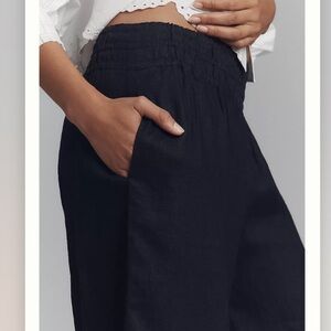 Anthropologie Somerset 100 Linen Pull On Pant Black Sz Large Wide Leg