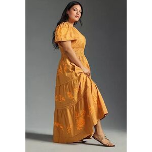 Anthropologie Somerset Embroidered Maxi Dress Tiered Orange 2X NEW
