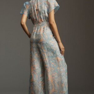 Anthropologie Somerset Jumpsuit Light Blue Peach Organza Size Small NWT