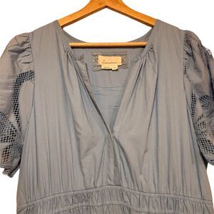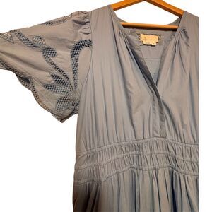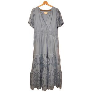 Anthropologie Somerset Maxi Dress XL Blue Cutwork Flutter Sleeve Lined Smocked