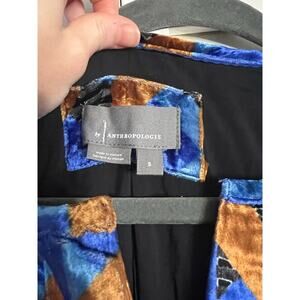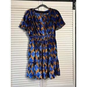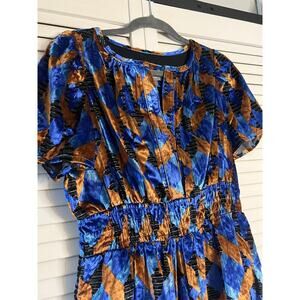 Anthropologie Somerset Mini Dress Velvet Blue Brown Short Sleeve Sz S