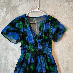 Anthropologie Somerset Mini Dress Velvet Blue Floral Medium Pockets Size XXS