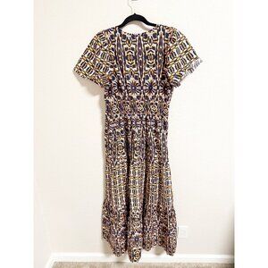 Anthropologie Somerset Tiered Maxi Dress Short Sleeve V Neck Floral Medium