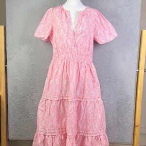Anthropologie Somerset Tiered Maxie Dress Large Pink Floral Ruffle Cotton Boho