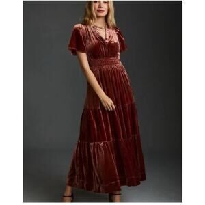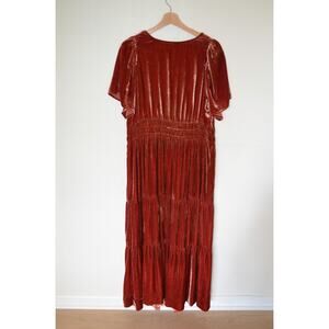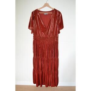 Anthropologie Somerset Velvet Edition Maxi Dress Long Tiered Raspberry Size 1X