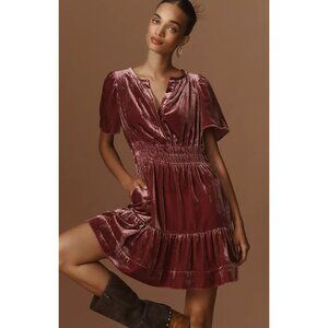 Anthropologie Somerset Velvet Mini Dress Size XXS in Mauve