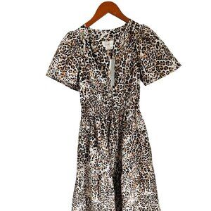 Anthropologie Somerset collection Maxi Dress Leopard Print Short Sleeves & Smock