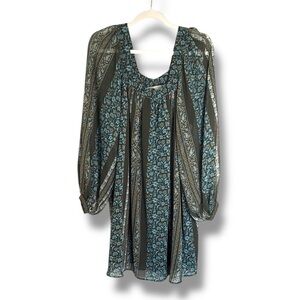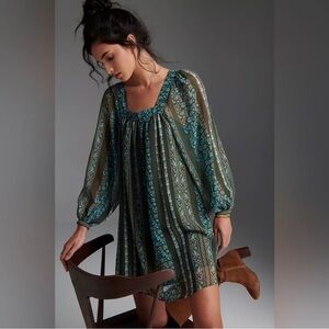Anthropologie Sona Blue Motif Paisley Square Neck Tunic Dress Size Medium